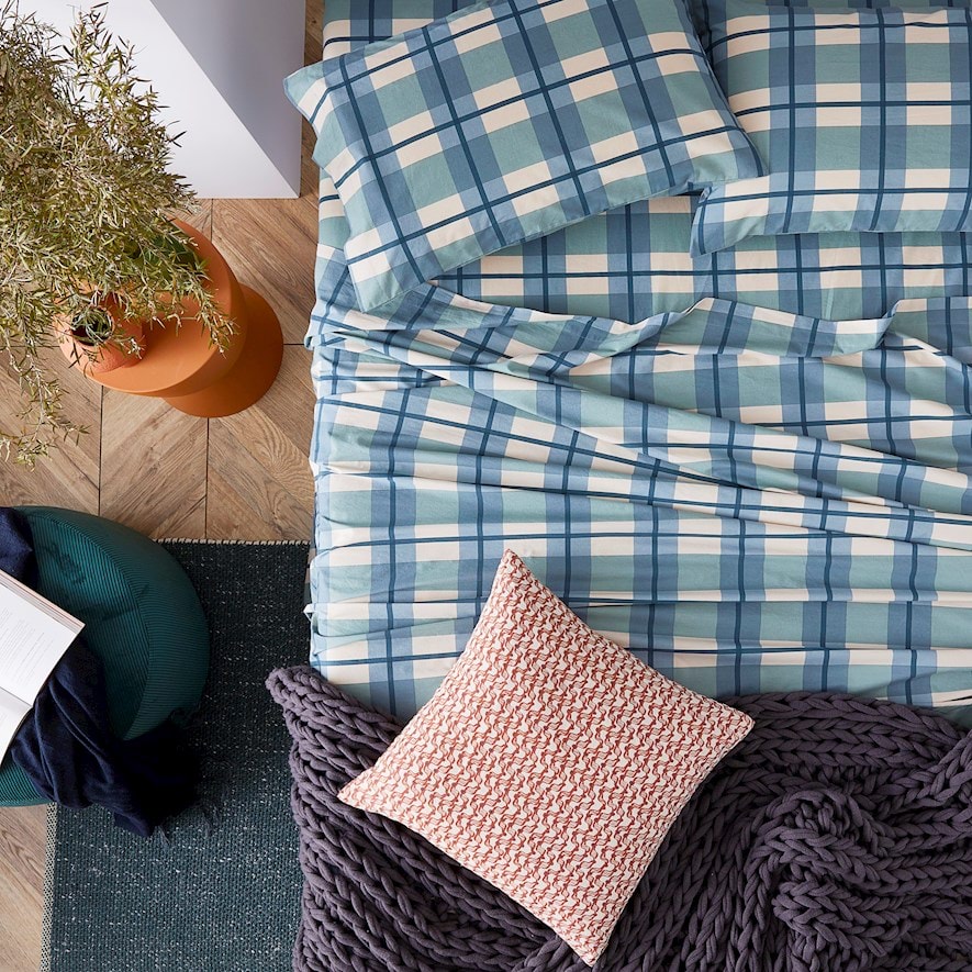 Stonewashed Printed Cotton Ocean Check Sheet Separates