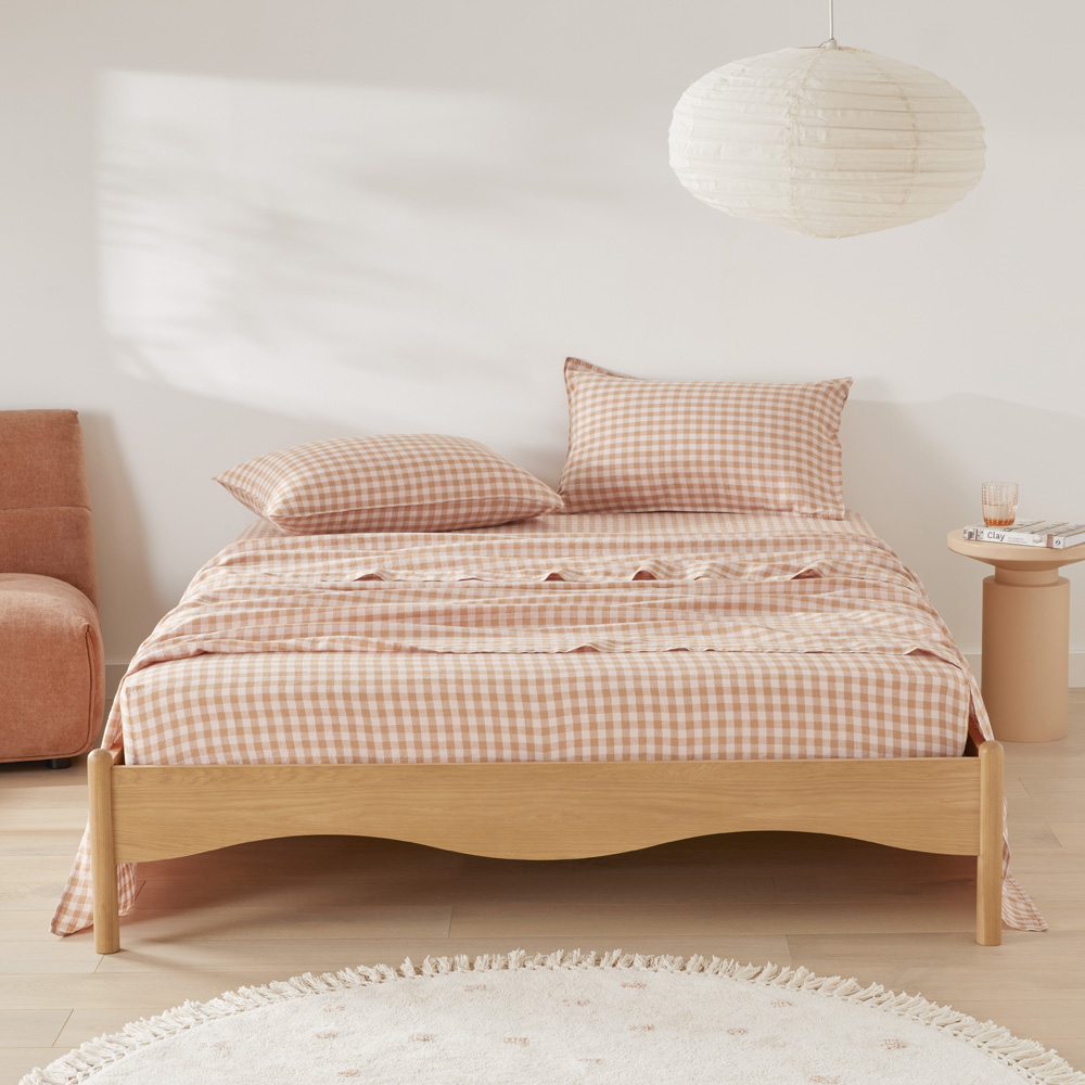 Vintage Washed Linen Caramel & Pink Check Sheet Separates