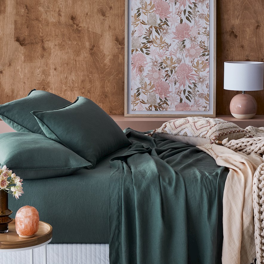Vintage Washed Linen Cypress Sheet Set