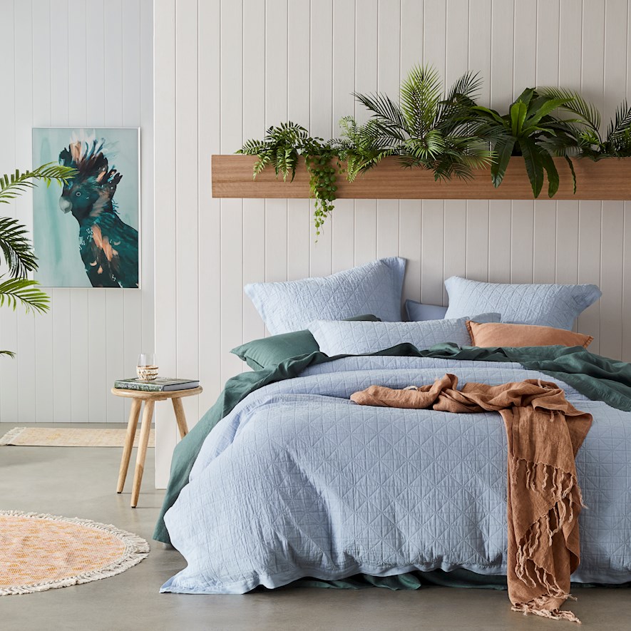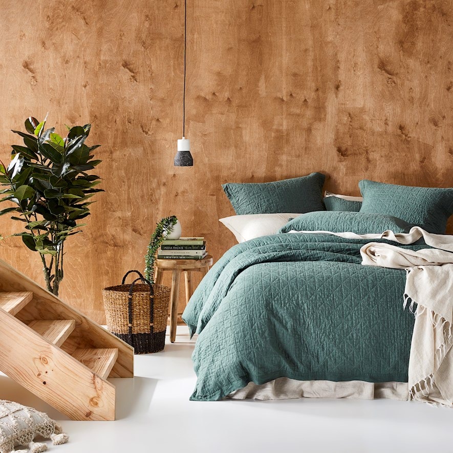 Vintage Washed Linen Cypress Quilted Quilt Cover Separates