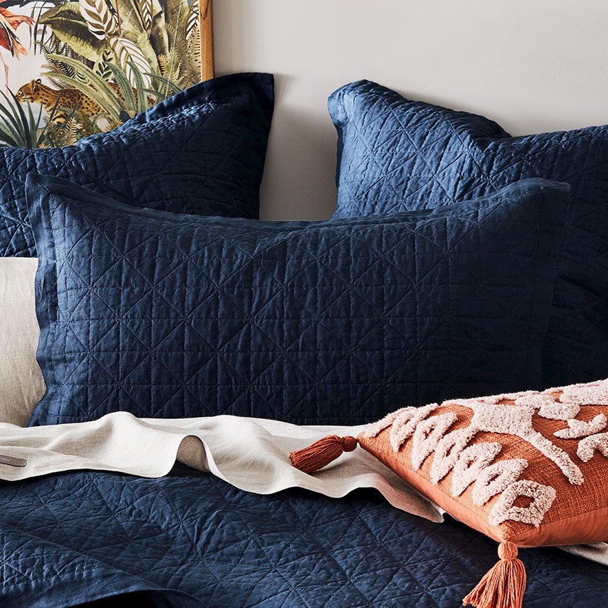 Vintage Washed Linen Old Navy Quilted Pillowcase