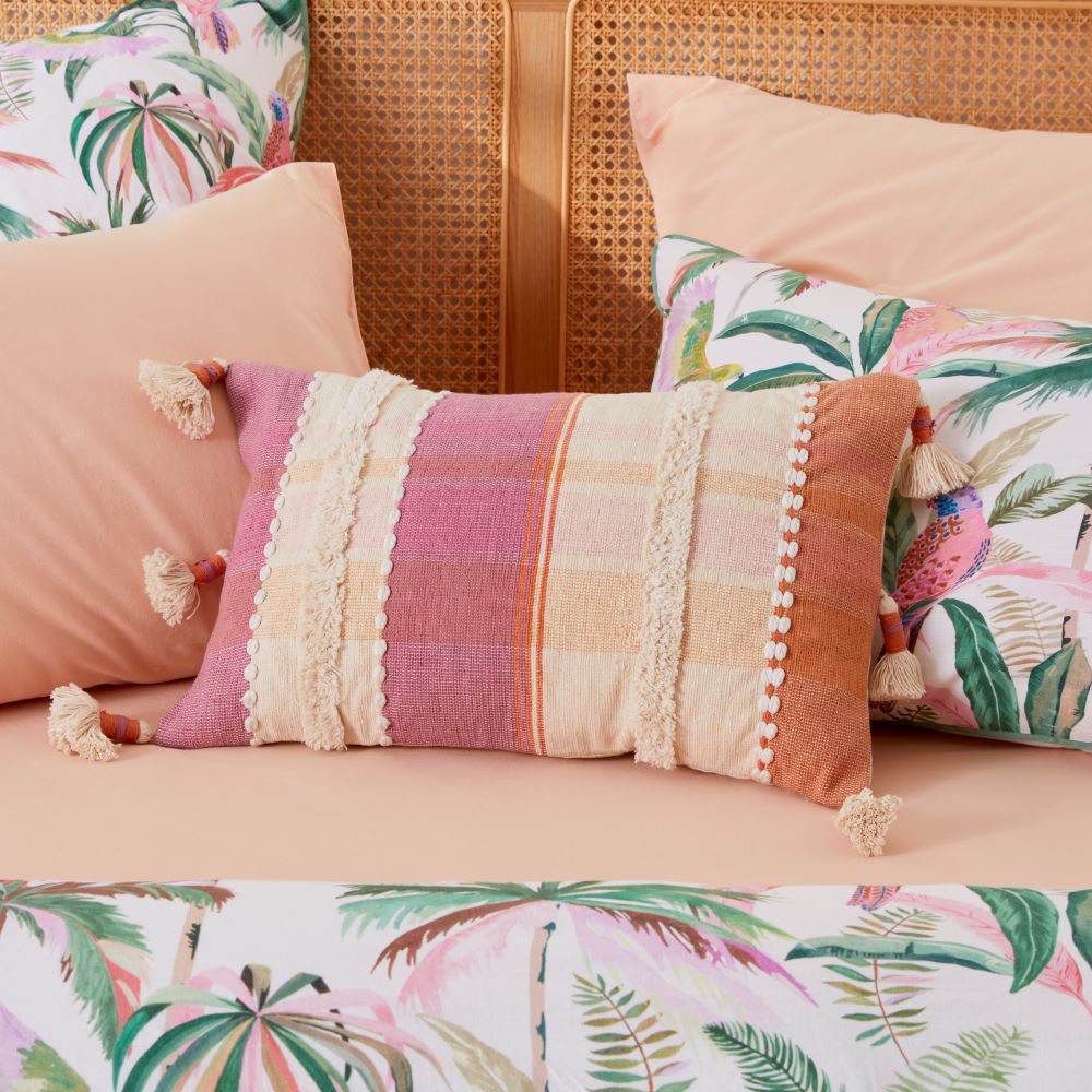 Belgian Gum Leaf & Deep Teal Check Vintage Washed Linen Cushion