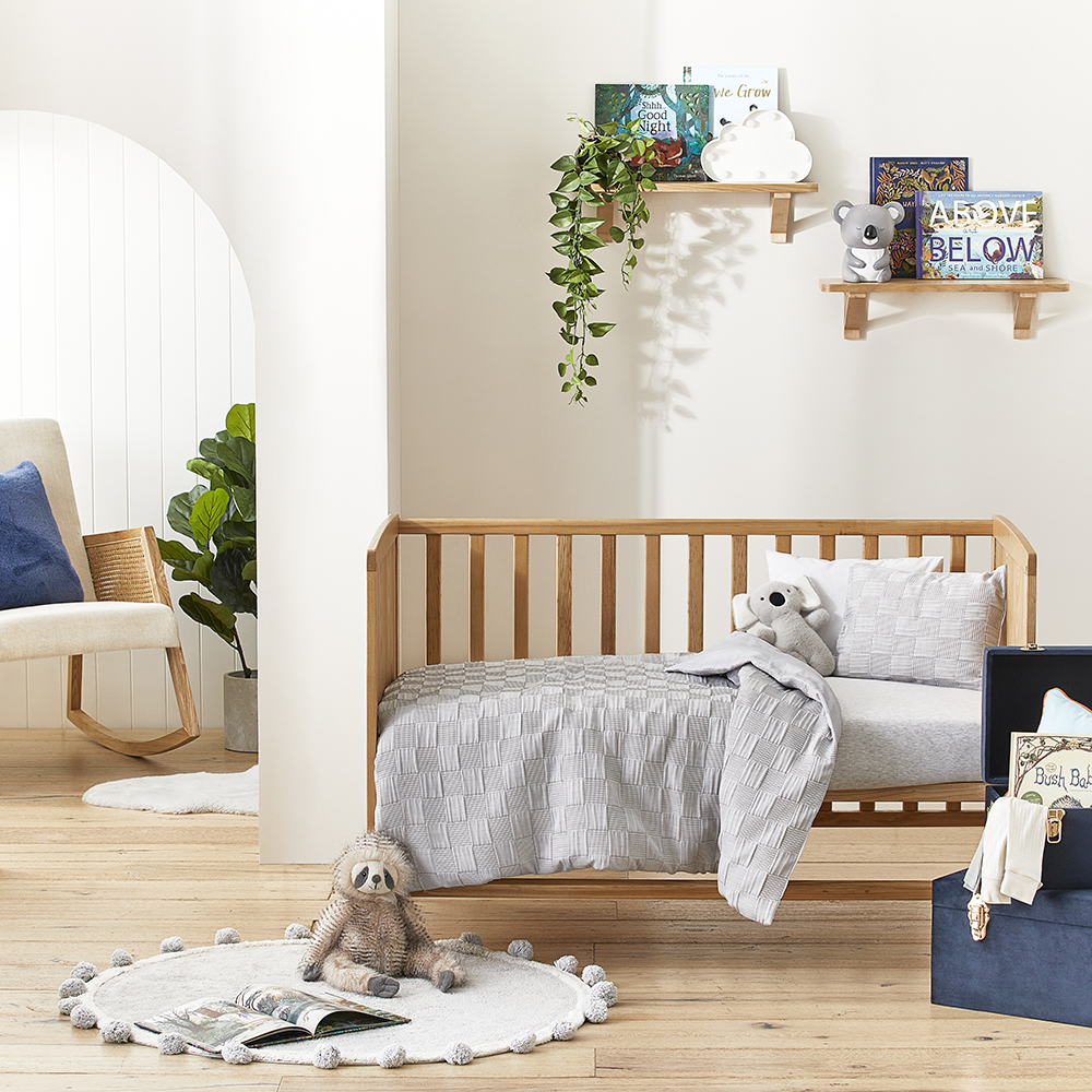 Cooper Silver Waffle Checkerboard Cot Quilt Cover Set